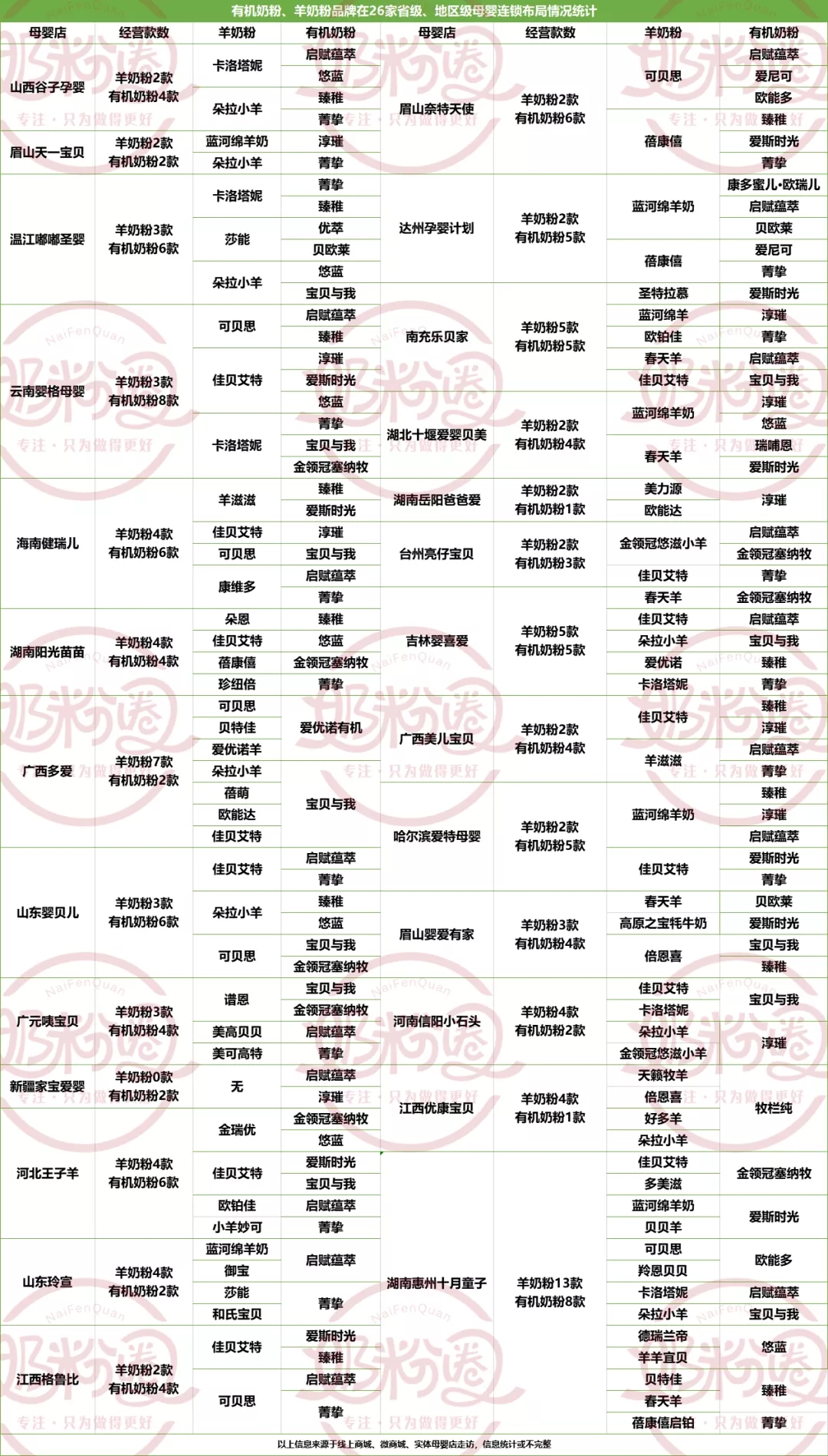 另外,笔者认为,由于此次统计的主要是中大型母婴连锁,这些门店有自己的产品定位,需要选择品牌力高的产品为门店做背书,而有机奶粉是业内普遍默认的高端、超高端产品,这样的产品也符合门店高端定位,有助于拉升门店格调。