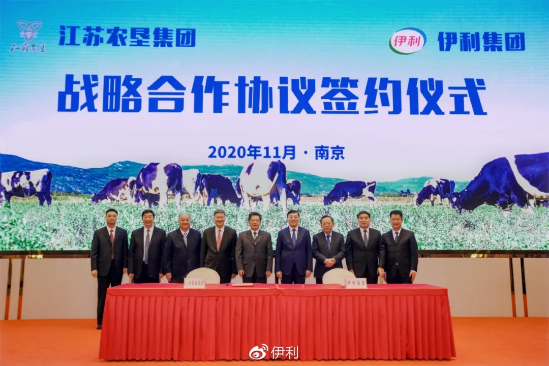为落实国家及江苏省奶业振兴战略,实现资源优势互补,通过强强联合共同建立长期稳定的战略合作关系,11月26日,伊利集团与江苏农垦集团在南京签署战略合作备忘录。江苏省委副书记任振鹤出席并见证签约仪式。伊利集团董事长潘刚、江苏农垦集团董事长魏红军出席仪式并发言。